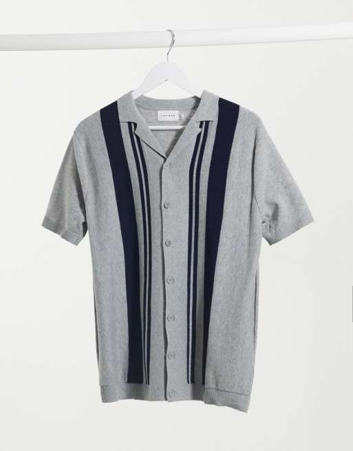Topman Graues Strickhemd Mit Reverskragen Und Streifen Asos